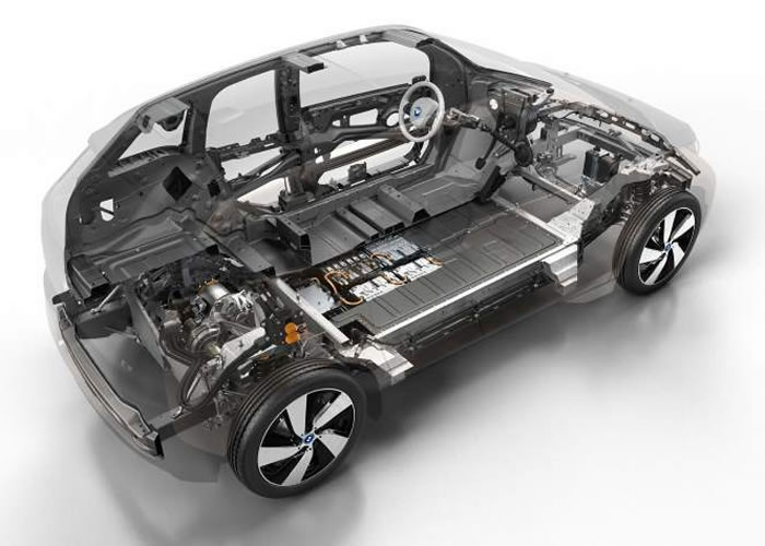 Forged aluminium suspension links, hollow driveshafts and the use of aluminium crews and bolts are also aimed at reducing the i3’s weight. The car’s lithium-ion battery pack weighs 230kg and is mounted beneath the cabin floor.