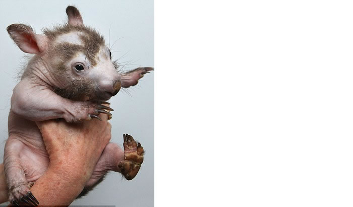 After suffering extreme stress because it had been abandoned by it’s mother this baby wombat lost all of it hair which left it looking very strange indeed, in fact if you didn’t know it was a hairless wombat you might be inclined to think it looked like a baby Chupacabra!