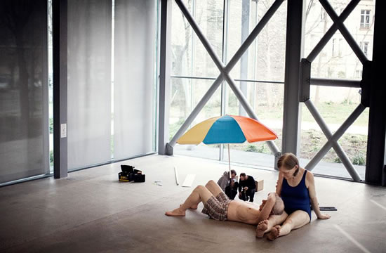 Mueck never rushes the scrupulous process – the sculptures, called “Young Couple,” “Woman with Shopping Bags” and “Couple under an Umbrella”, took him two years to create. They will be on exposition in Paris at the Fondation Cartier through September 29.